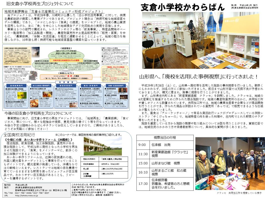 1月に行った山形県視察や、第2回支倉小学校の未来を考えるつどいの内容をまとめたかわらばんを発行しました!